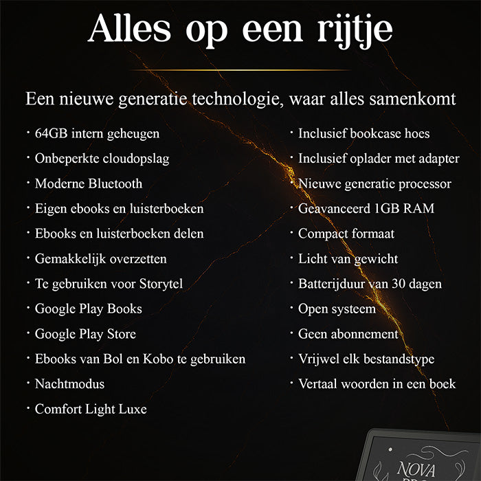 • Inclusief luxe bookcase ereader hoesje & oplader –direct gebruiksklaar